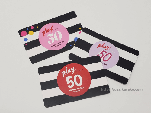 カード背面に書かれている有効期限内(およそ1か月以内)に買い物をすると、セフォラの会員ポイントであるビューティーインサイダーポイントが50ポイントが付与されます。(このポイントがたまるとサンプルと交換できます)