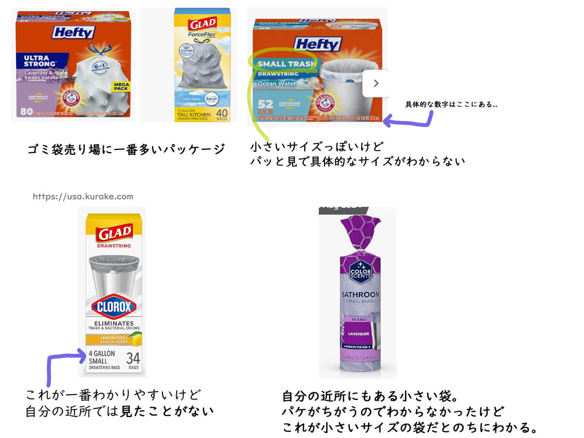 アメリカで快適なクリーンライフ?を送るためにわたしがまずぶち当たった壁が、「日本で使っていたようなサイズのゴミ袋がゴミ袋売り場にない..!?」でした。