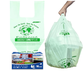 ゴミ袋は8ガロンの土に還る緑色の袋を使っています。