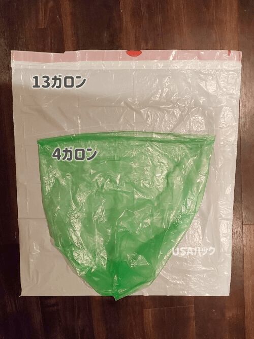 なじみのあるゴミ袋のサイズはそれぞれあると思いますが、少なくとも13ガロンは日本でゴミ出しするときに運んでいたものとサイズがほぼ同じだと思います。4ガロンも例えゴミ箱に合わなくても使い道のあるサイズなので損はないと思いますよ。(間違えて13ガロンより少し小さなサイズを買ってしまったものの、サイズ的に何にも使えなかった経験があります..笑)